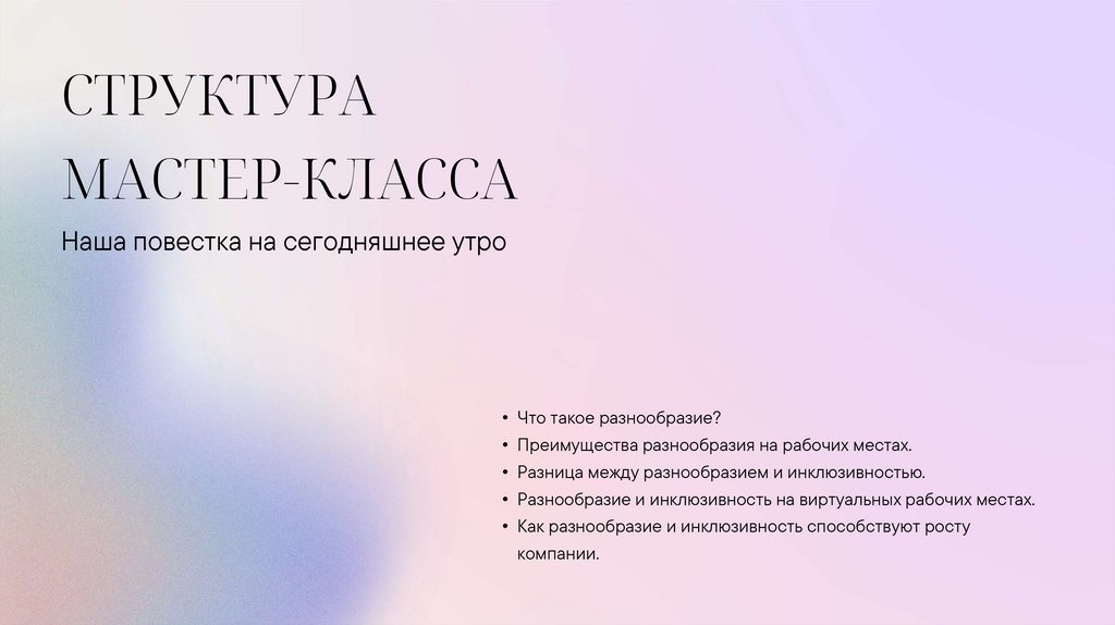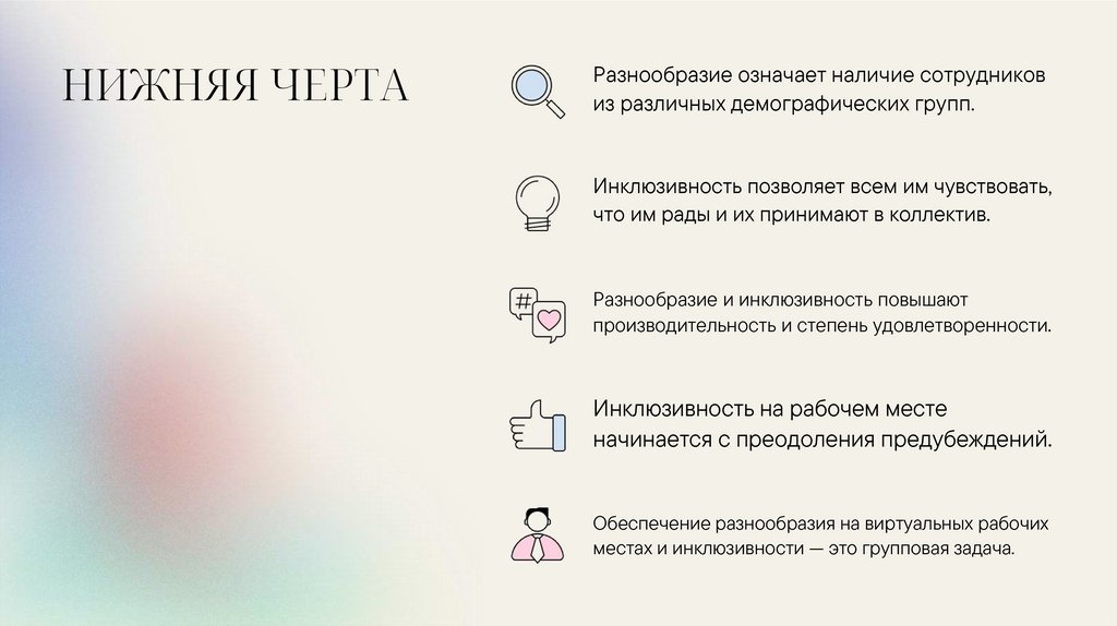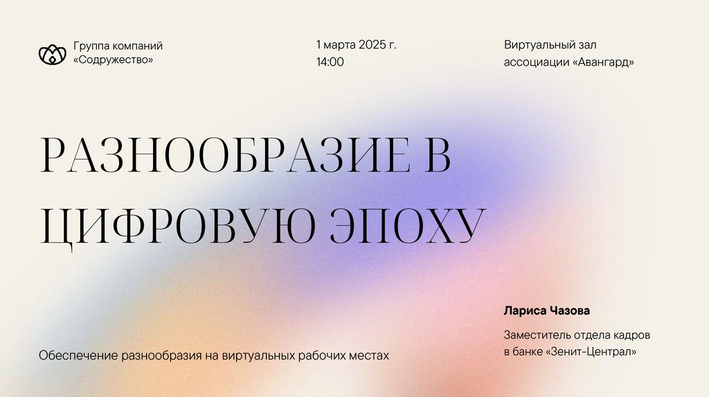 • Разнообразие и инклюзивность на виртуальных рабочих местах.