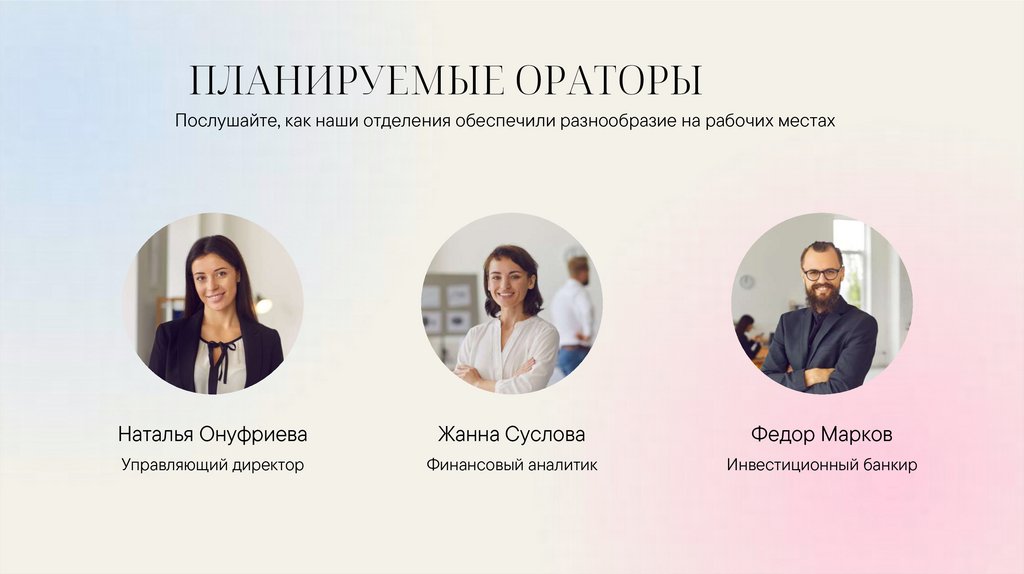 ПЛАНИРУЕМЫЕ ОРАТОРЫПослушайте, как наши отделения обеспечили разнообразие на рабочих местах