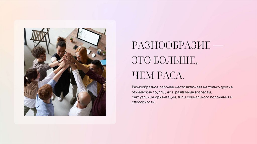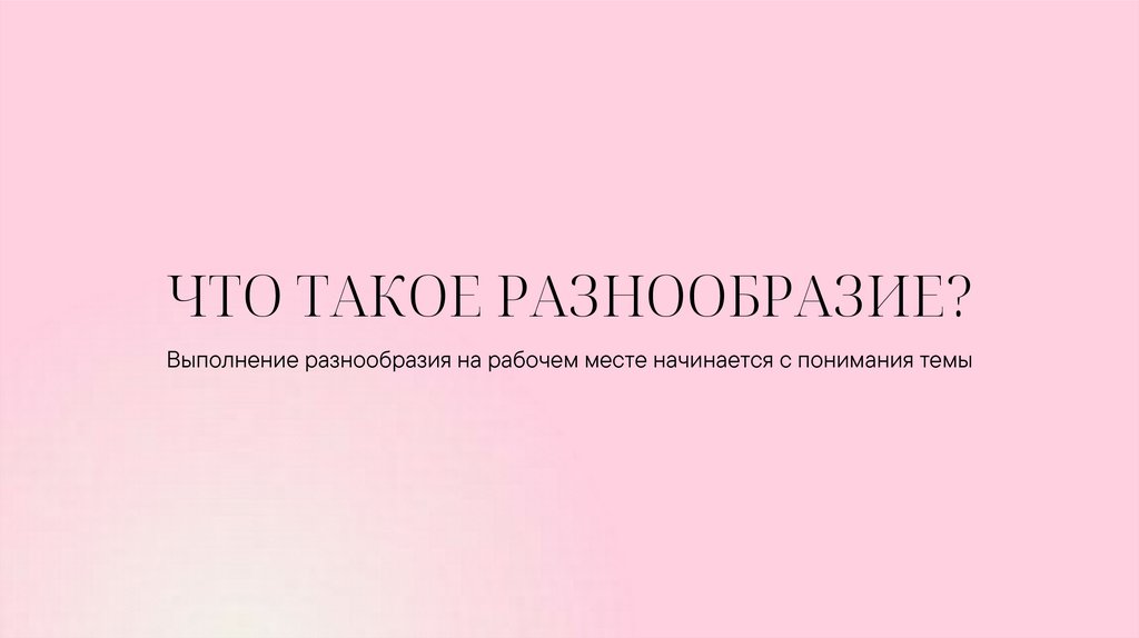 ЧТО ТАКОЕ РАЗНООБРАЗИЕ?Выполнение разнообразия на рабочем месте начинается с понимания темы
