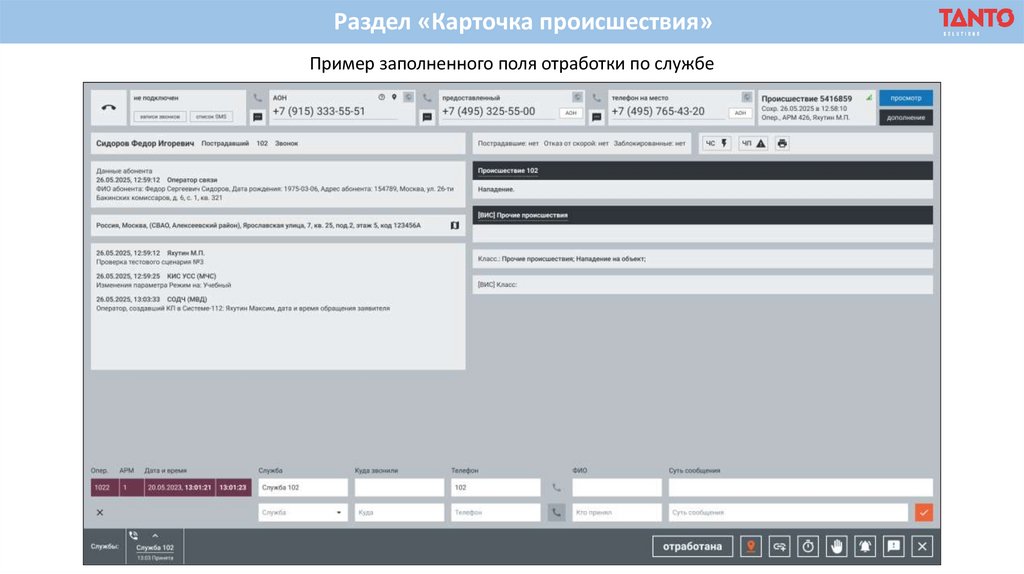Раздел «Карточка происшествия»Пример создания карточки происшествия с заполненными полями