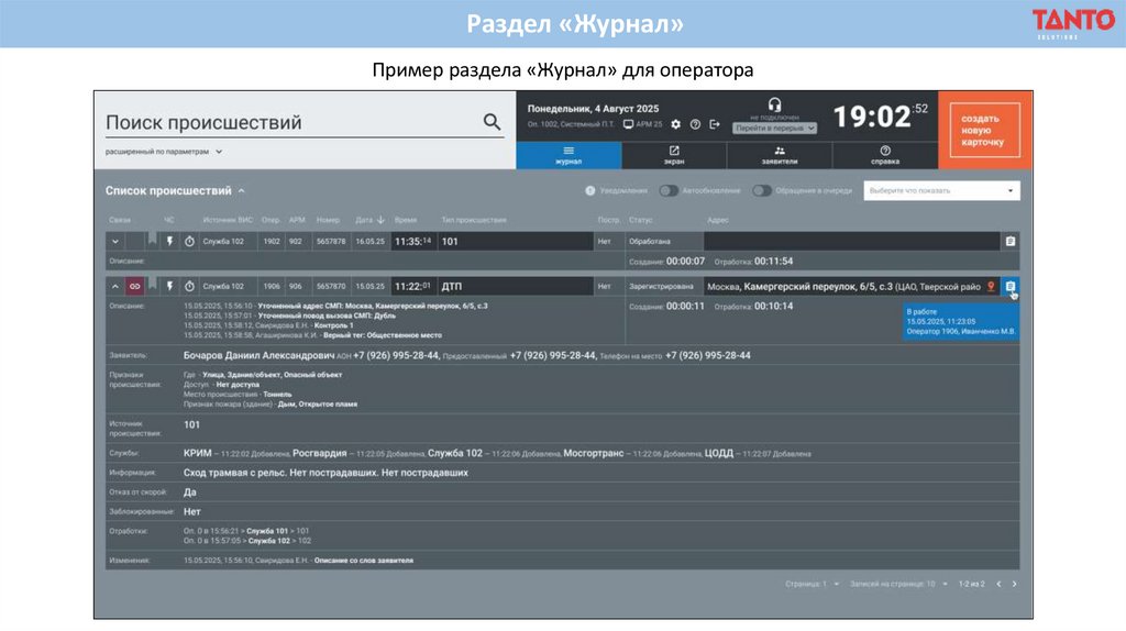 1. Разделы «Карточка происшествия» и «Журнал оператора»