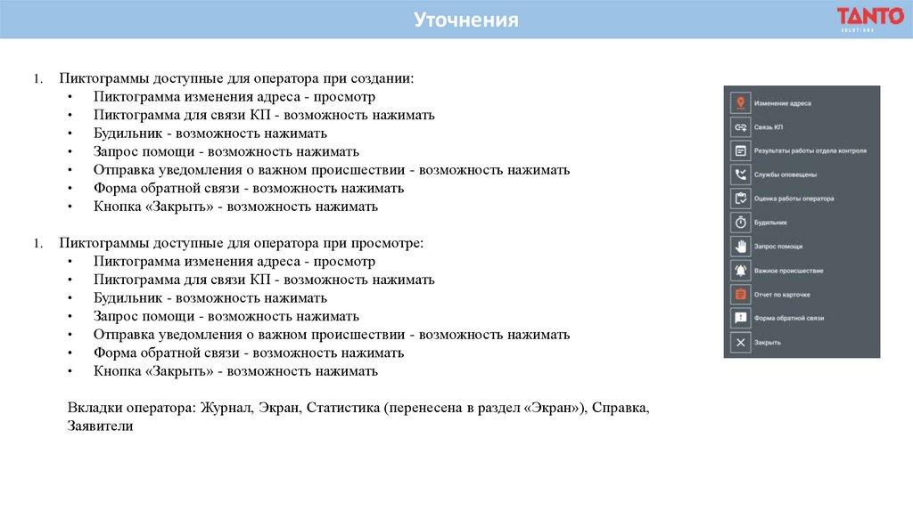 Пиктограммы доступные для оператора при просмотре: