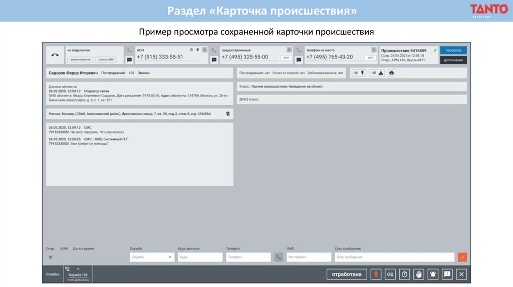 Раздел «Карточка происшествия»Пример просмотра сохраненной карточки происшествия