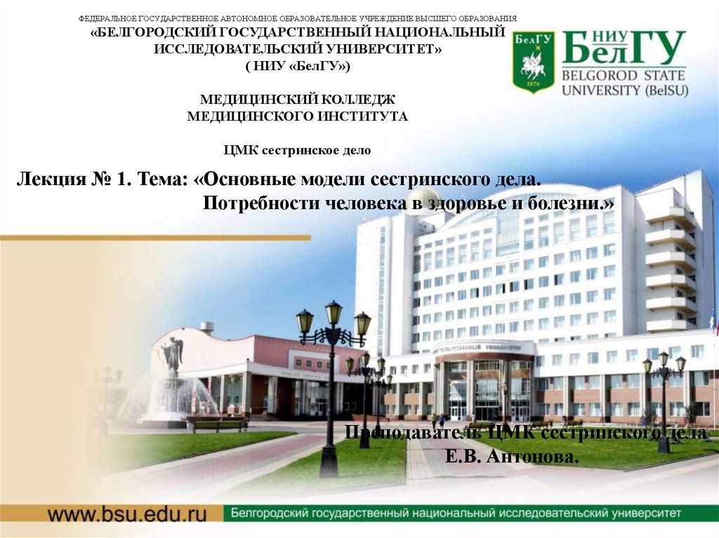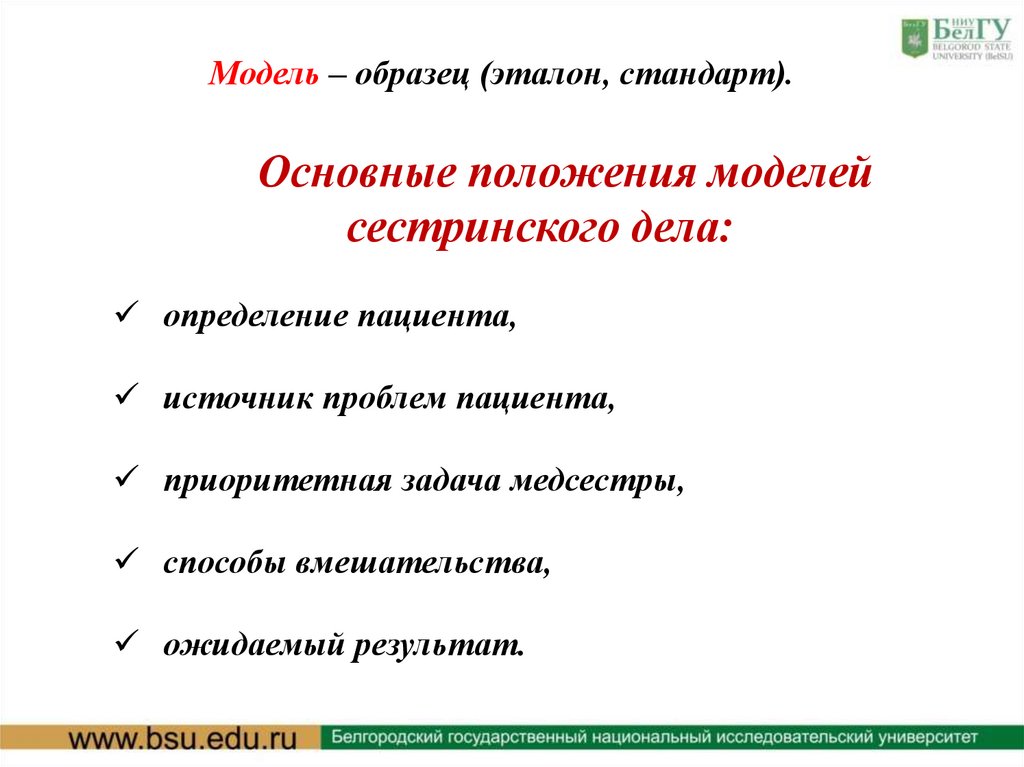 Лекция № 1. Тема: «Основные модели сестринского дела.