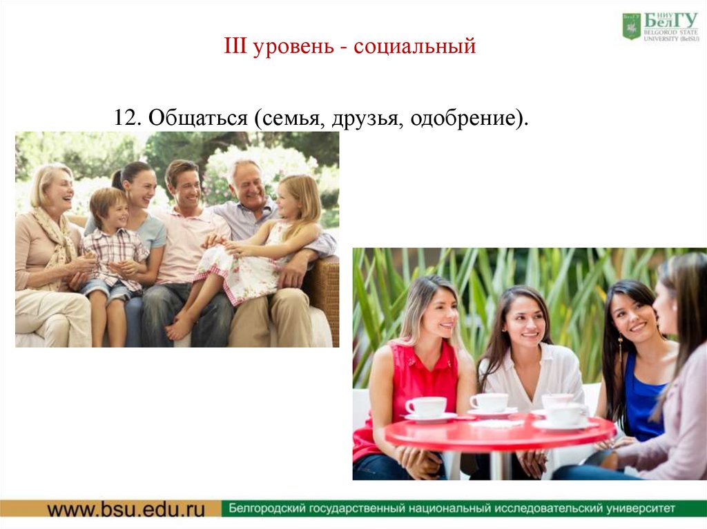 III уровень - социальный12. Общаться (семья, друзья, одобрение).