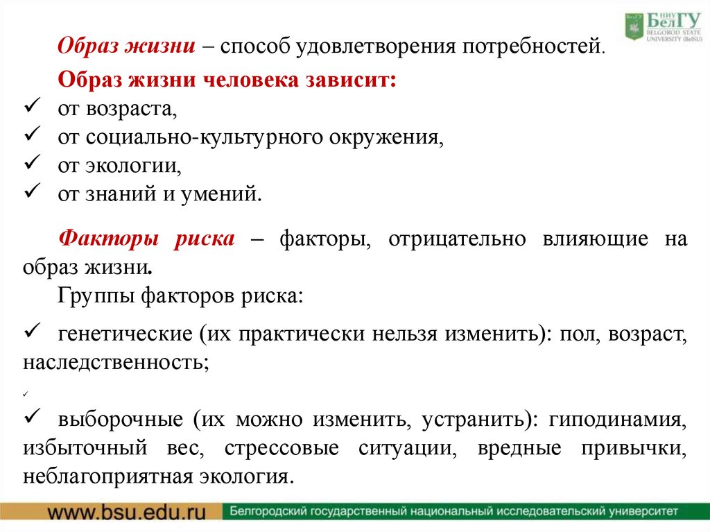 Образ жизни – способ удовлетворения потребностей.Образ жизни человека зависит: