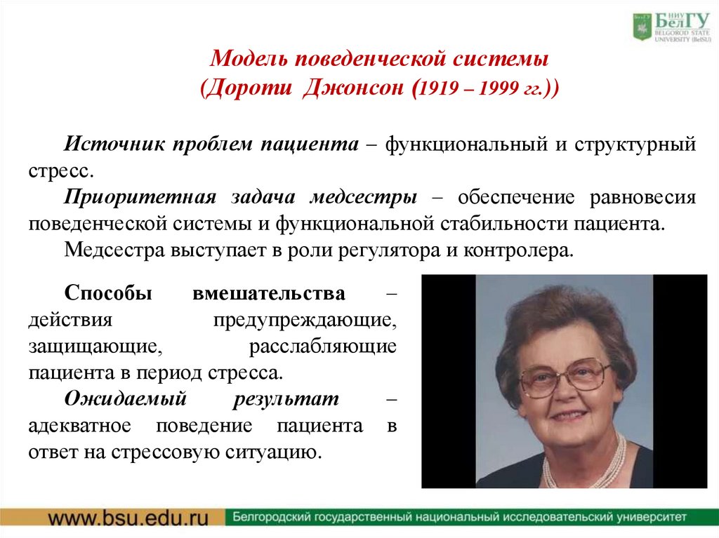 Модель поведенческой системы(Дороти Джонсон (1919 – 1999 гг.))