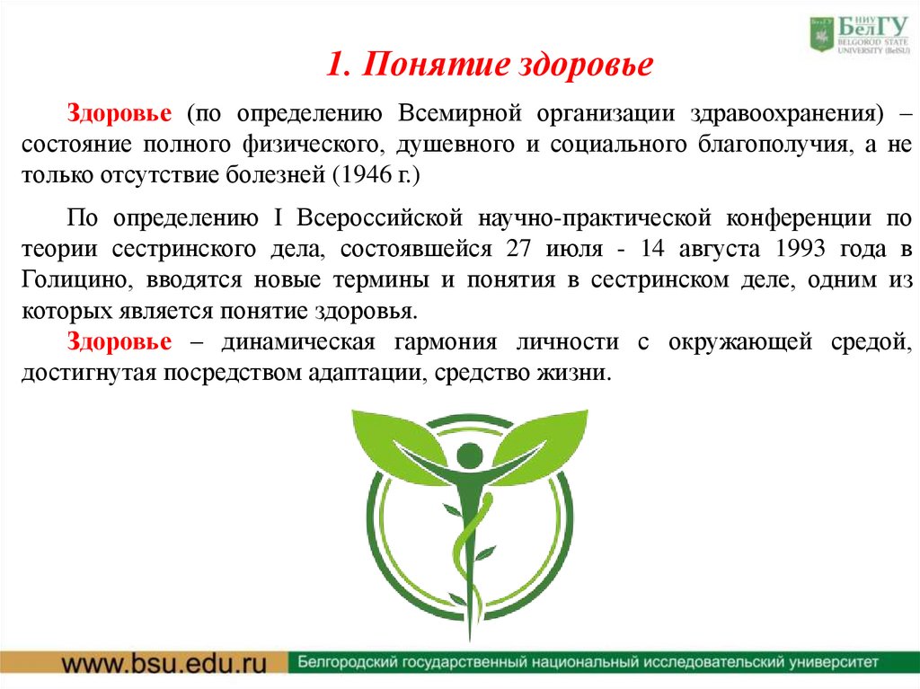 1. Понятие здоровьеЗдоровье (по определению Всемирной организации здравоохранения) –