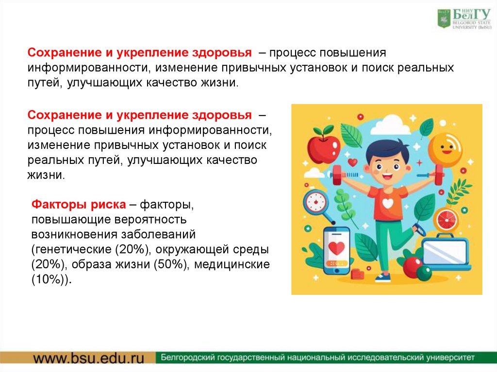 Сохранение и укрепление здоровья – процесс повышенияинформированности, изменение привычных установок и поиск реальных