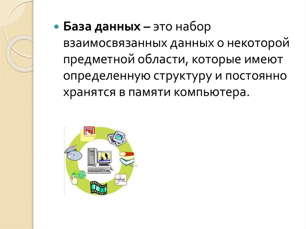База данных – это наборвзаимосвязанных данных о некоторой