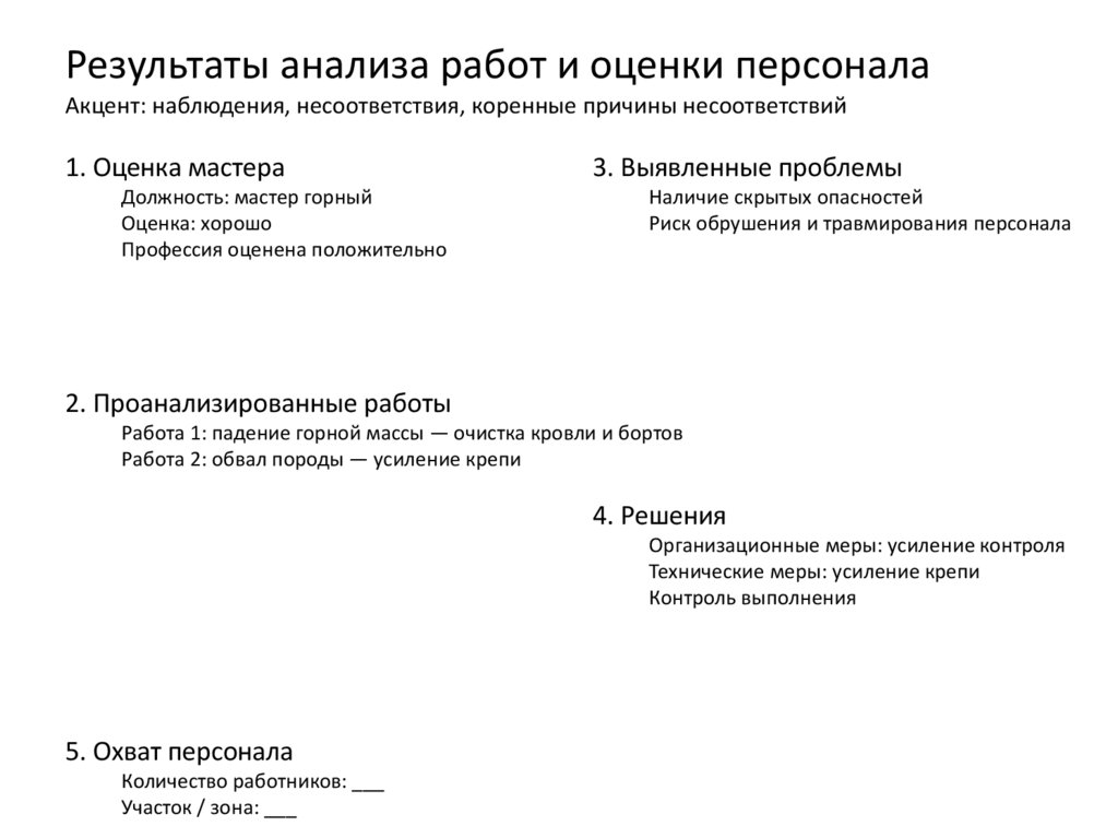 Результаты анализа работ и оценки персоналаАкцент: наблюдения, несоответствия, коренные причины несоответствий
