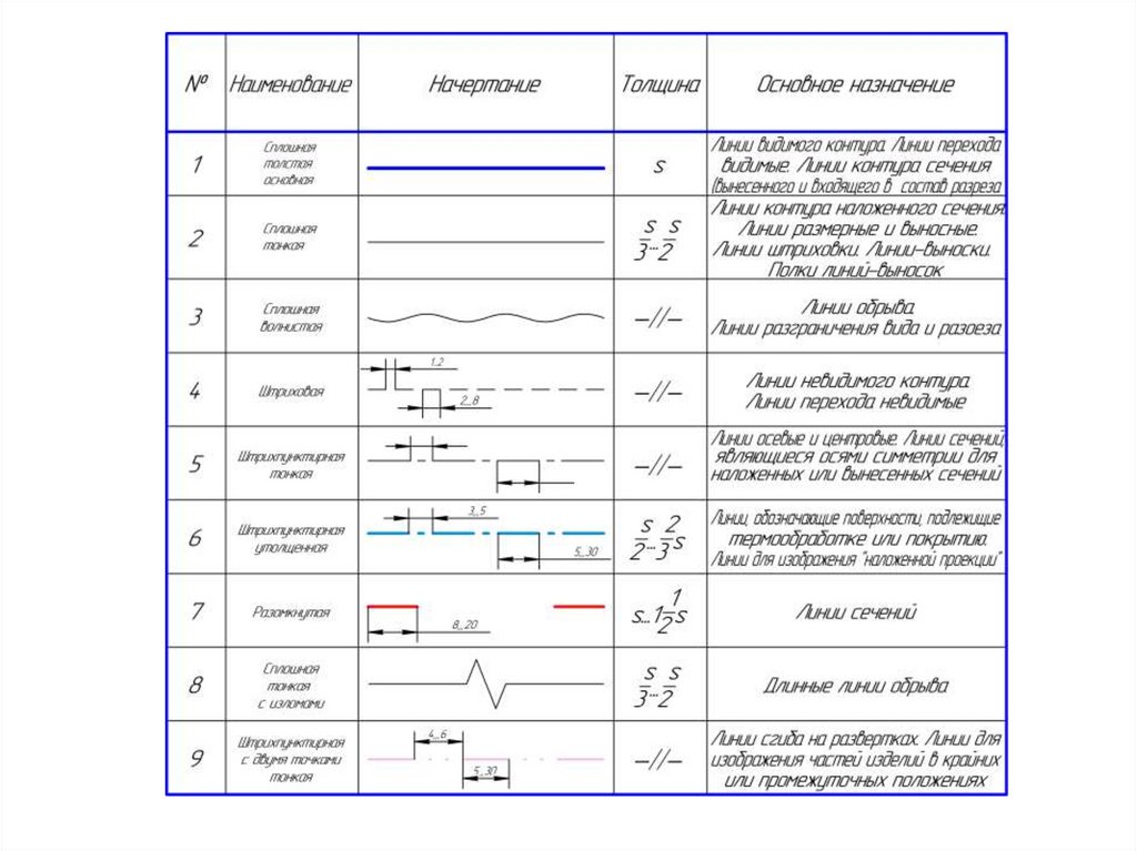 • Толщина сплошной основной линии