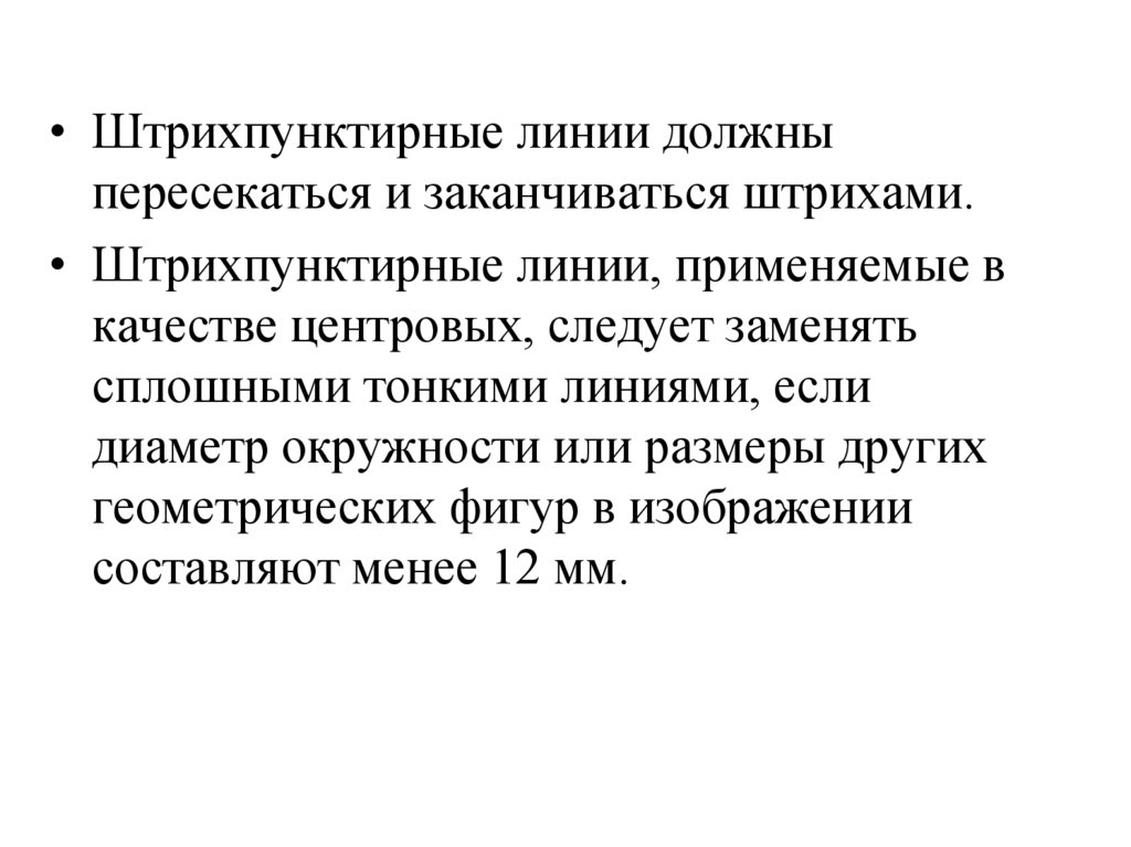 • Штрихпунктирные линии должныпересекаться и заканчиваться штрихами.