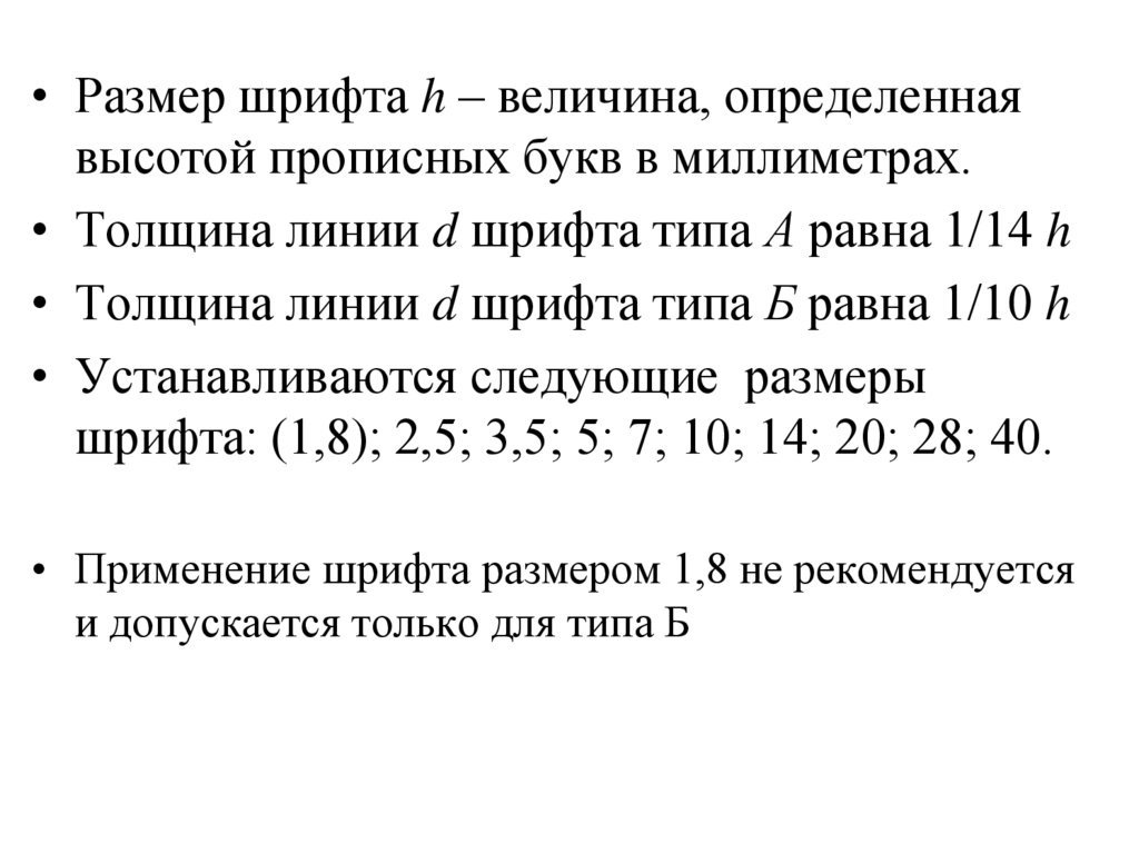• Размер шрифта h – величина, определеннаявысотой прописных букв в миллиметрах.