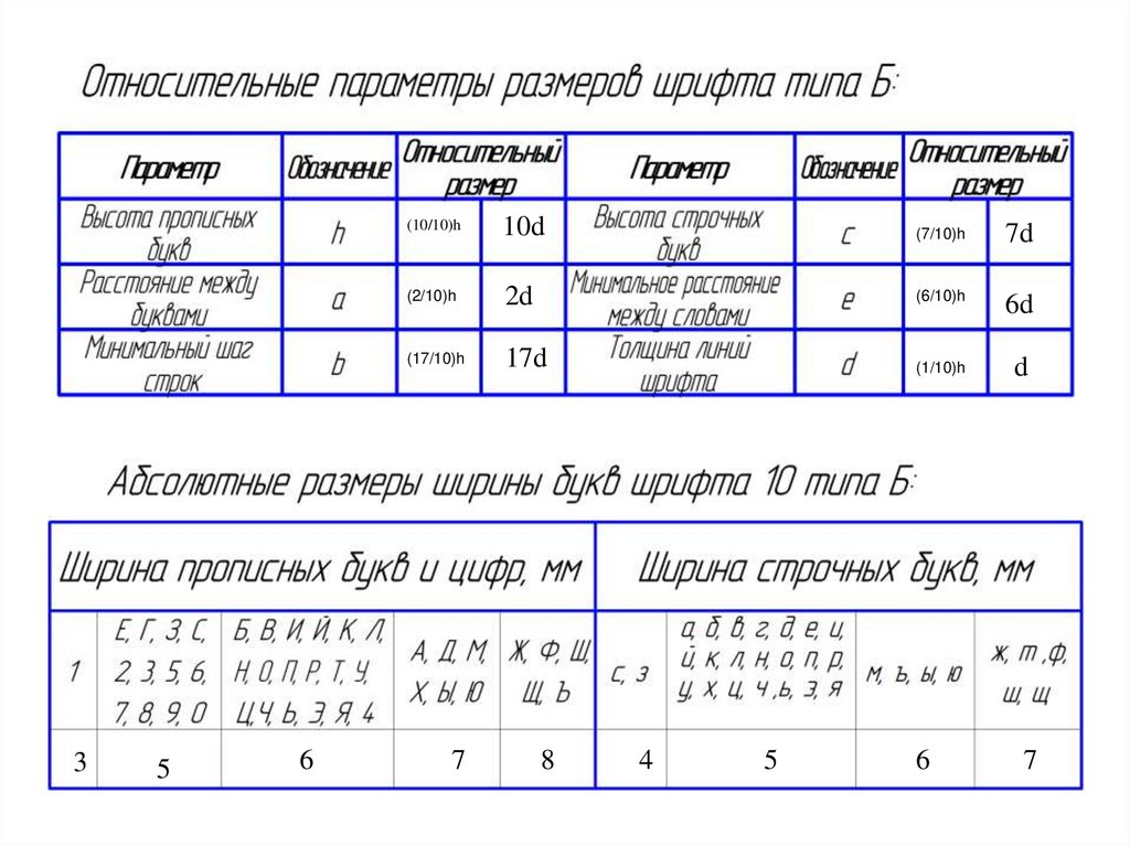 • Толщина линии d шрифта типа Б равна 1/10 h