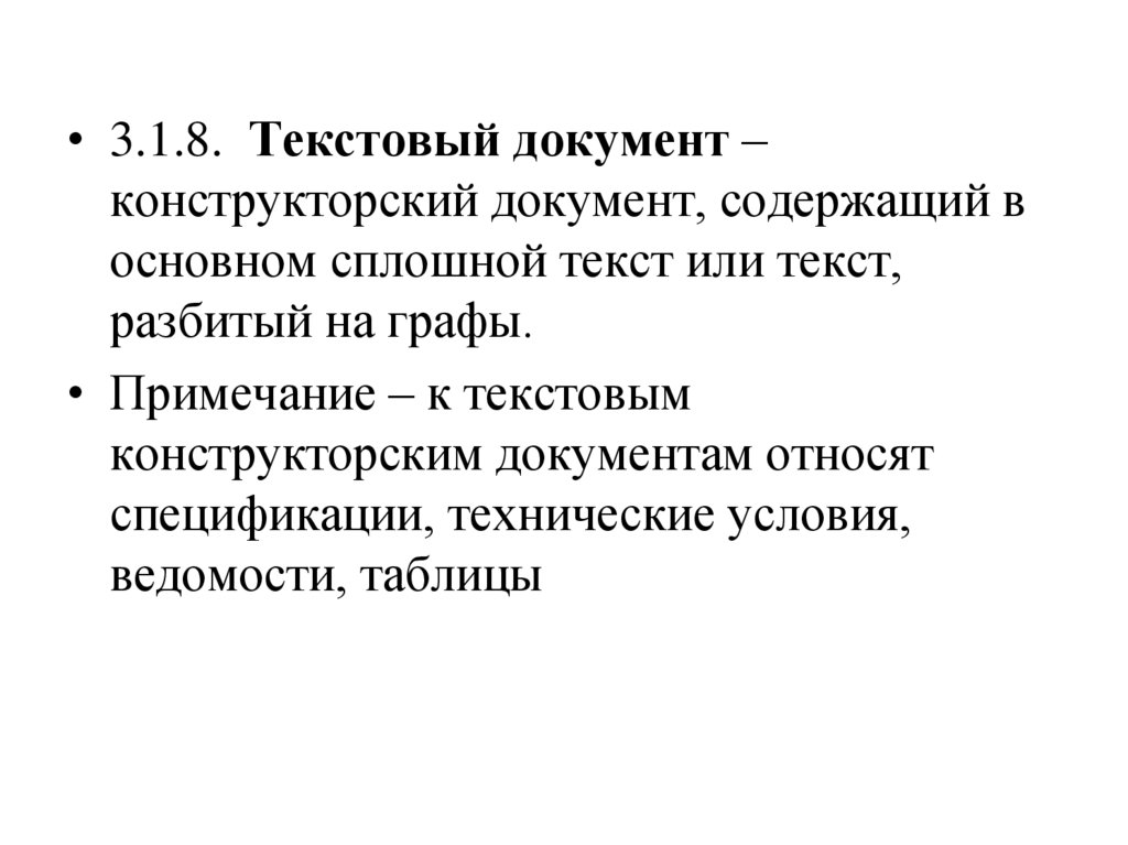 • 3.1.8. Текстовый документ –конструкторский документ, содержащий в