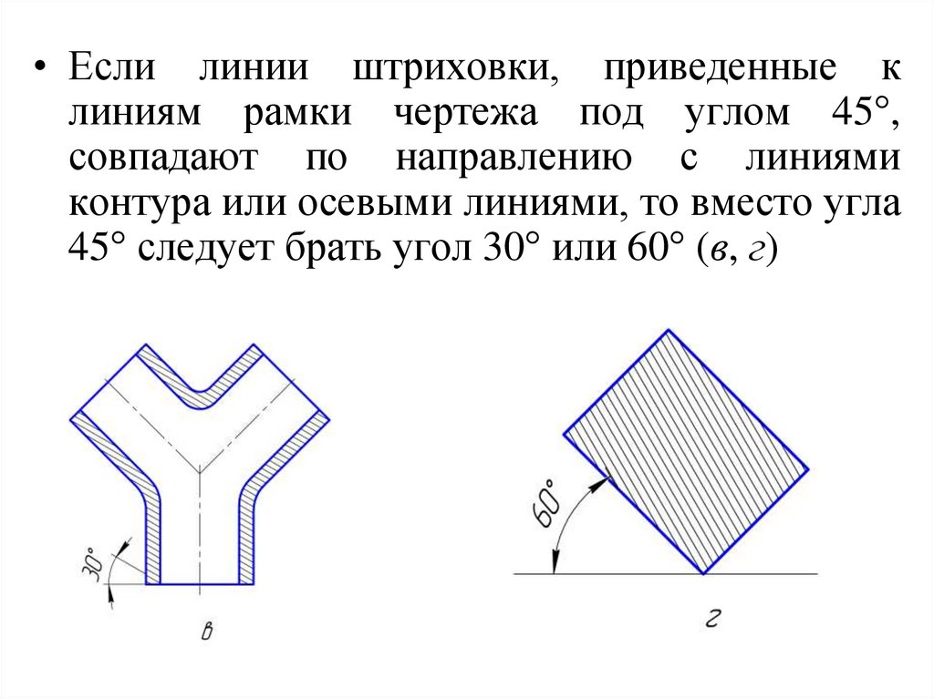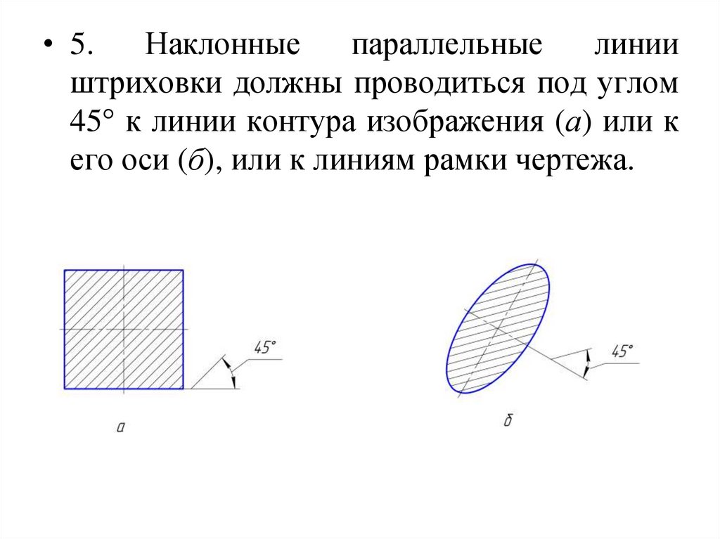 штриховки должны проводиться под углом