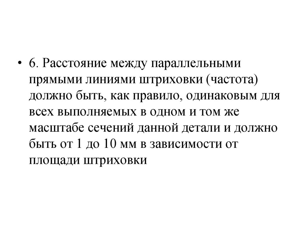 • 6. Расстояние между параллельнымипрямыми линиями штриховки (частота)