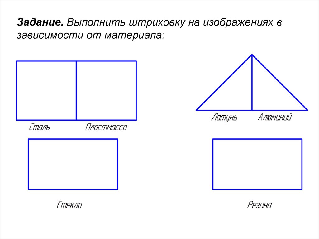 Задание. Выполнить штриховку на изображениях взависимости от материала: