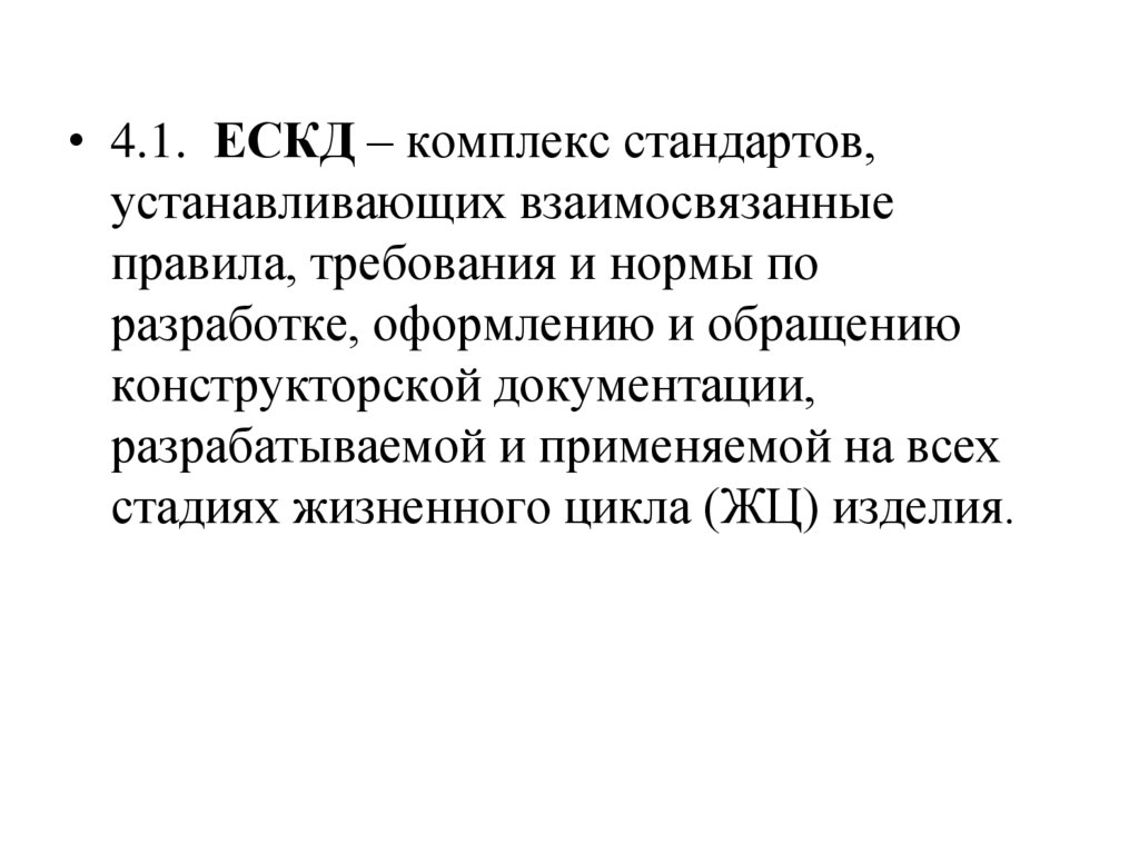 • 4.1. ЕСКД – комплекс стандартов,устанавливающих взаимосвязанные