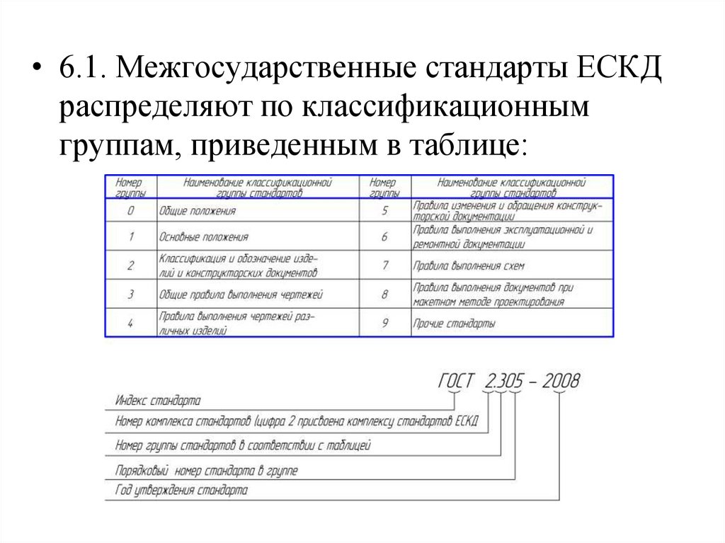 • 6.1. Межгосударственные стандарты ЕСКДраспределяют по классификационным