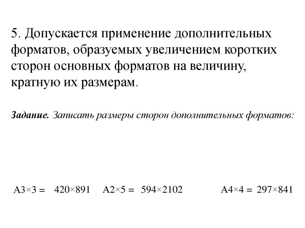 5. Допускается применение дополнительныхформатов, образуемых увеличением коротких