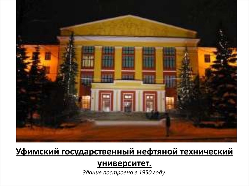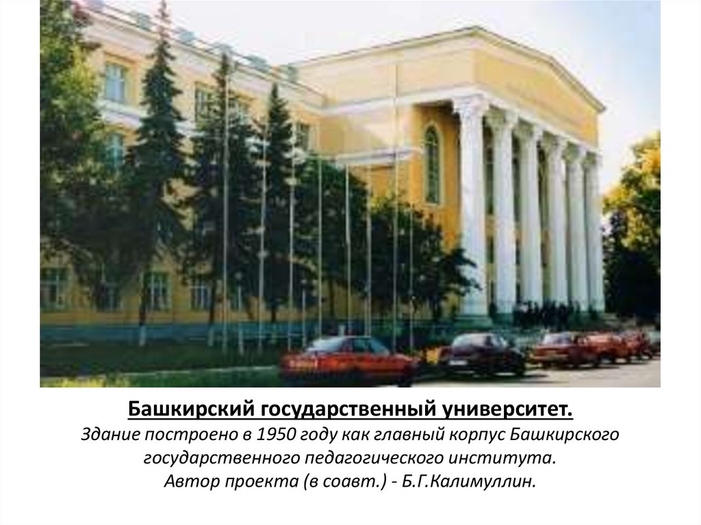 Башкирский государственный университет.Здание построено в 1950 году как главный корпус Башкирского