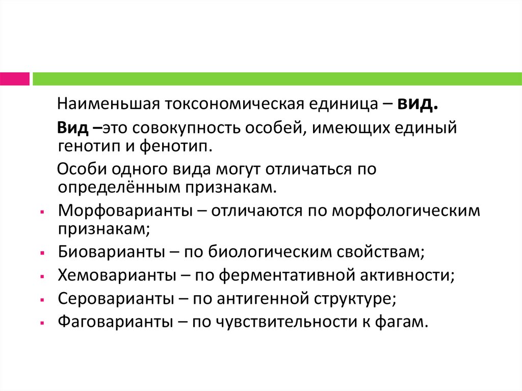 Биоварианты – по биологическим свойствам;