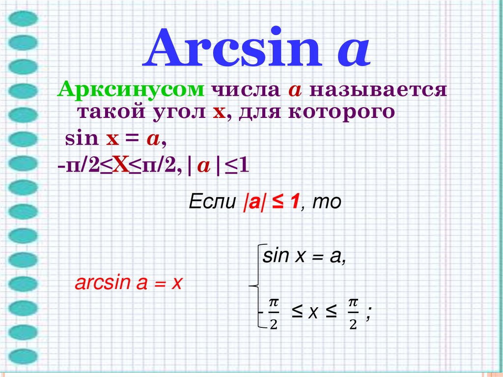 Arcsin аАрксинусом числа a называется