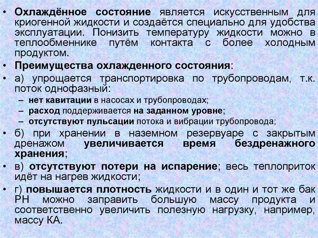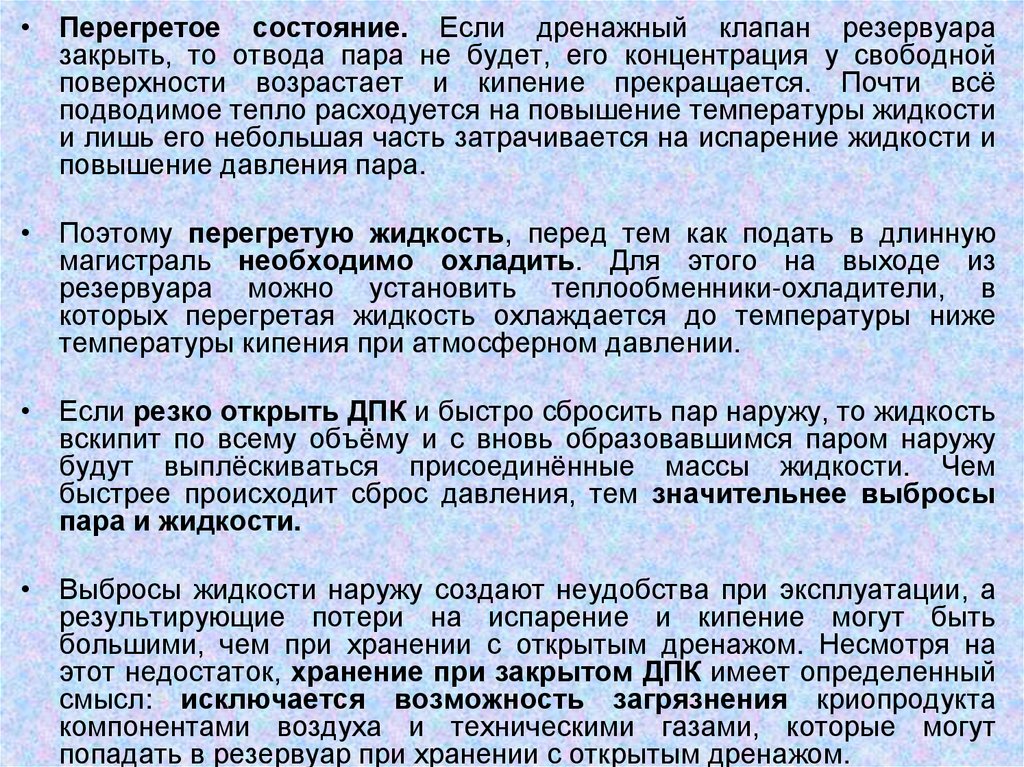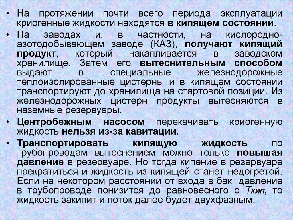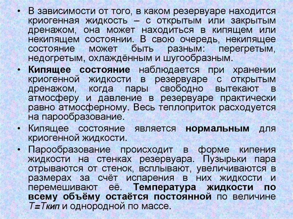 • На протяжении почти всего периода эксплуатациикриогенные жидкости находятся в кипящем состоянии.
