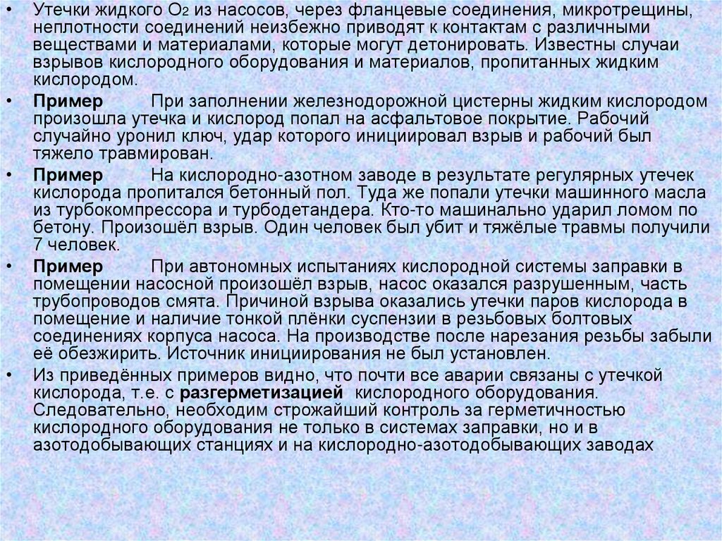 ожижения и хранения, взрывоопасность при контакте