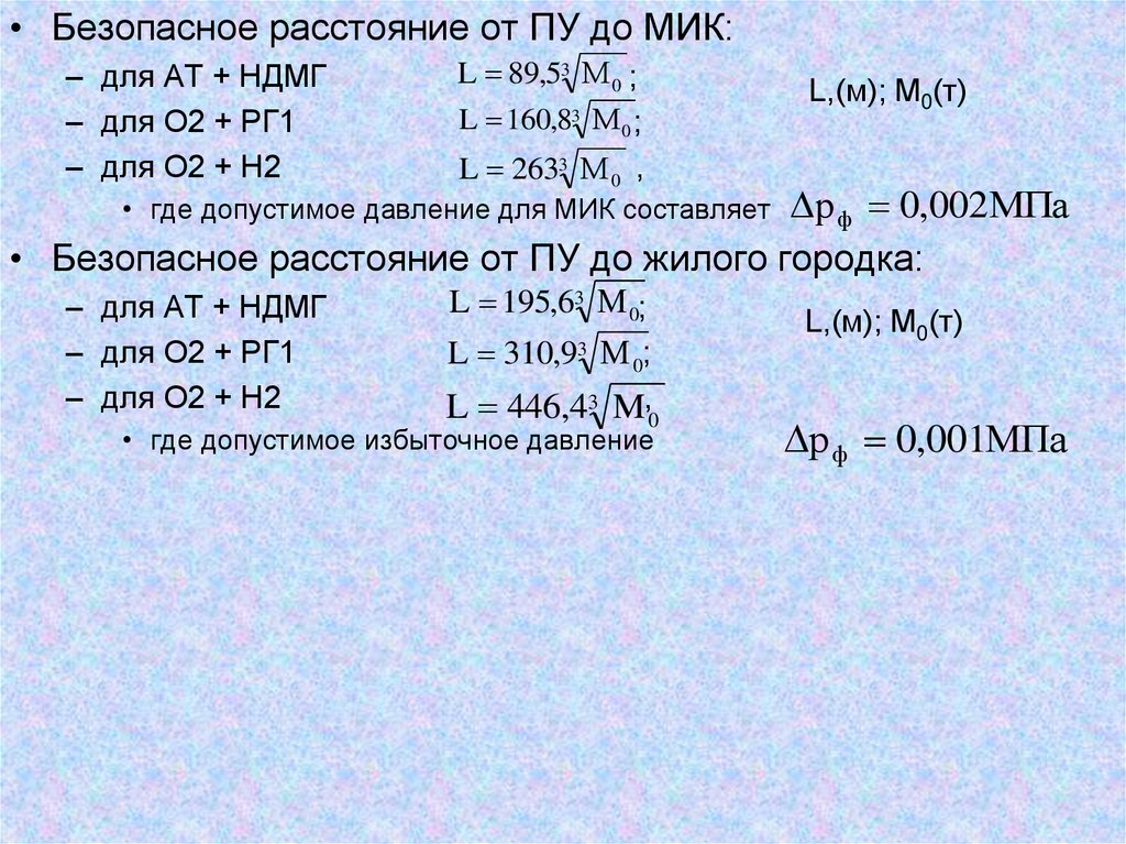где 0,4 и 0,9 – доли энергии взрыва парогазовой смеси и ТНТ, затрачиваемые на формирование ударной волны Pф; QН иQТ = 4240