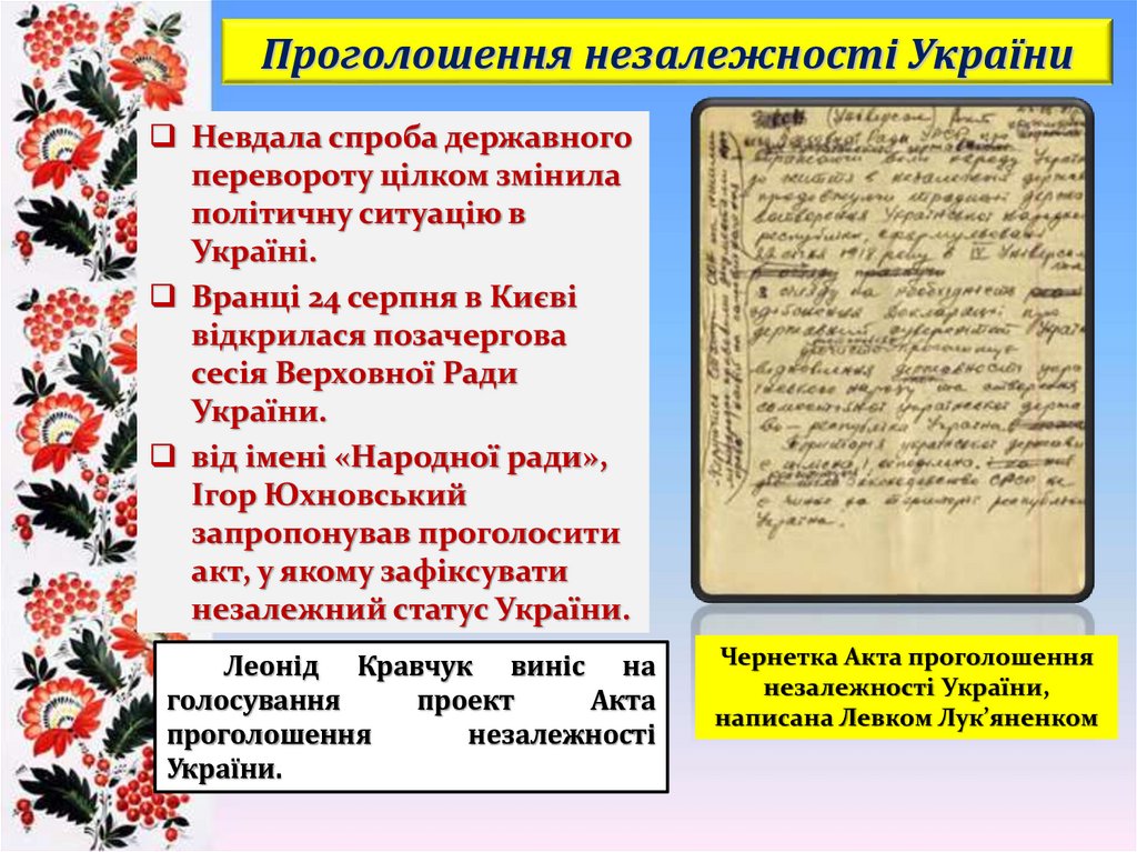 проголошення незалежності України?».