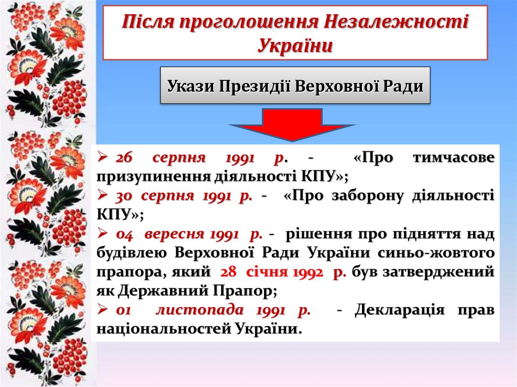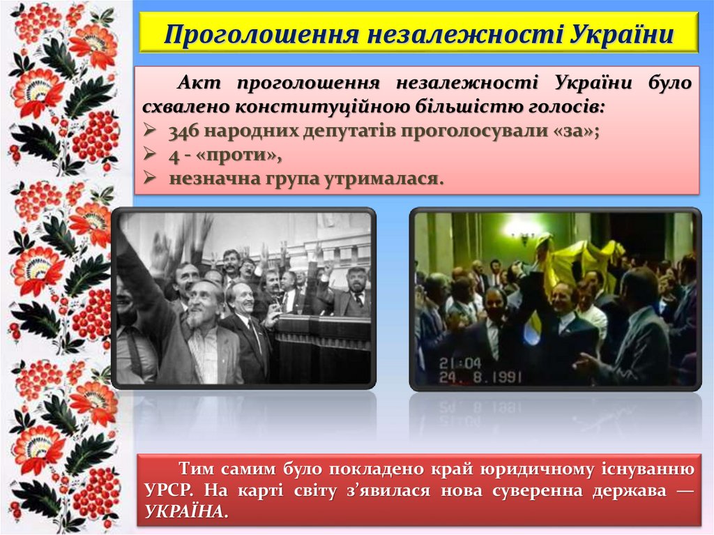 24 серпня 1991 р. Верховна Рада УРСР прийняла Акт