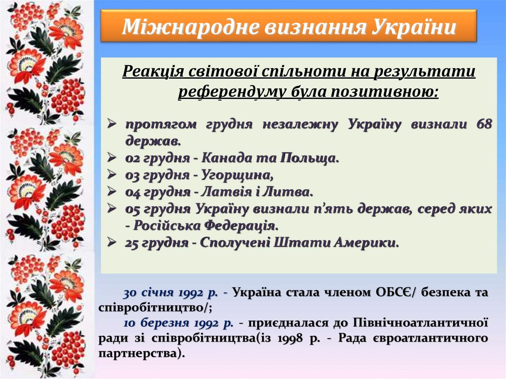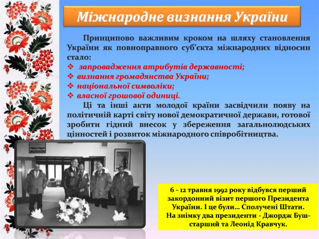 Міжнародне визнання УкраїниПринципово важливим кроком на шляху становлення