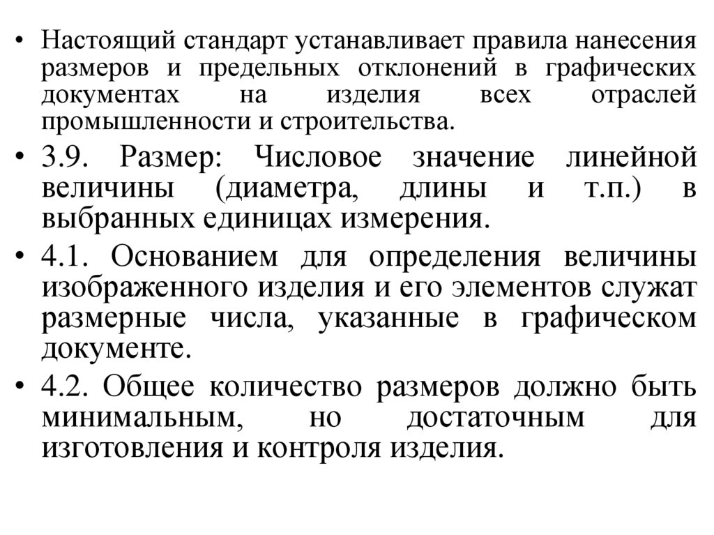 • Настоящий стандарт устанавливает правила нанесенияразмеров и предельных отклонений в графических