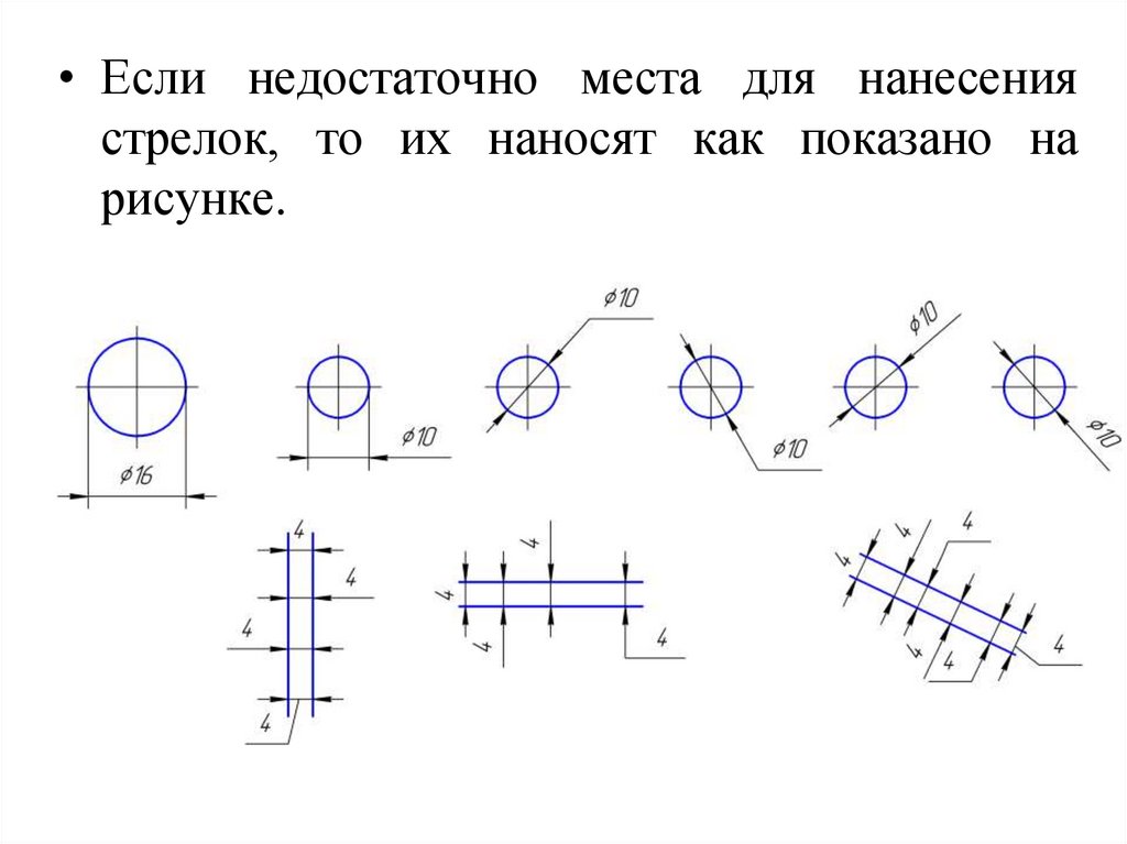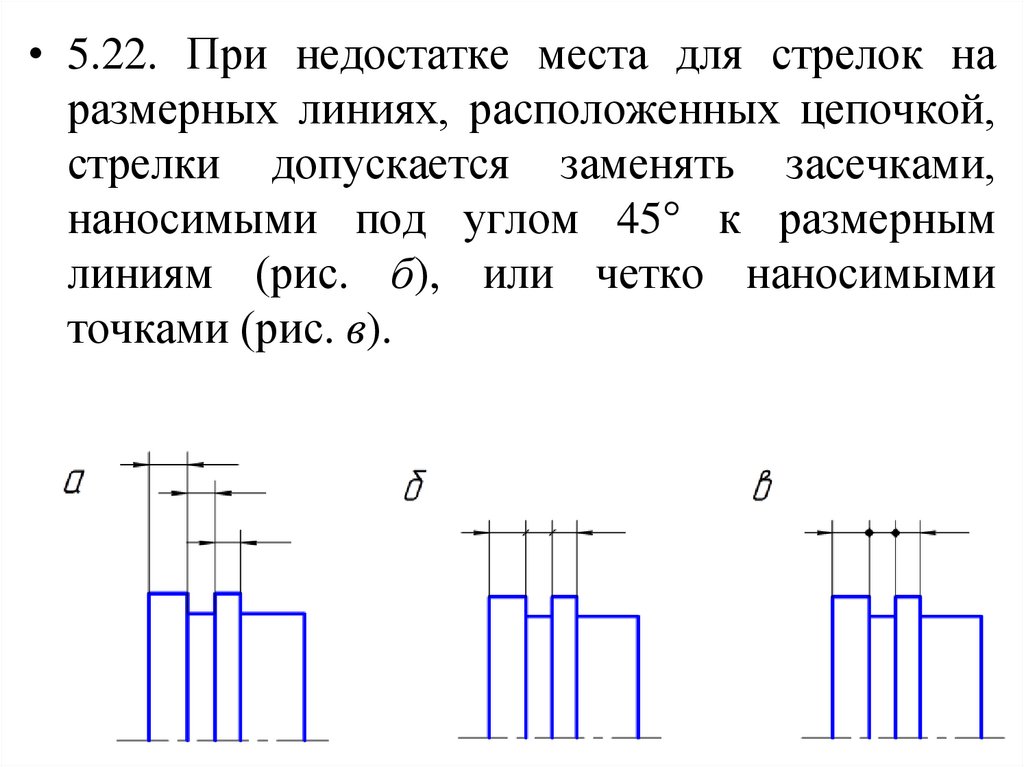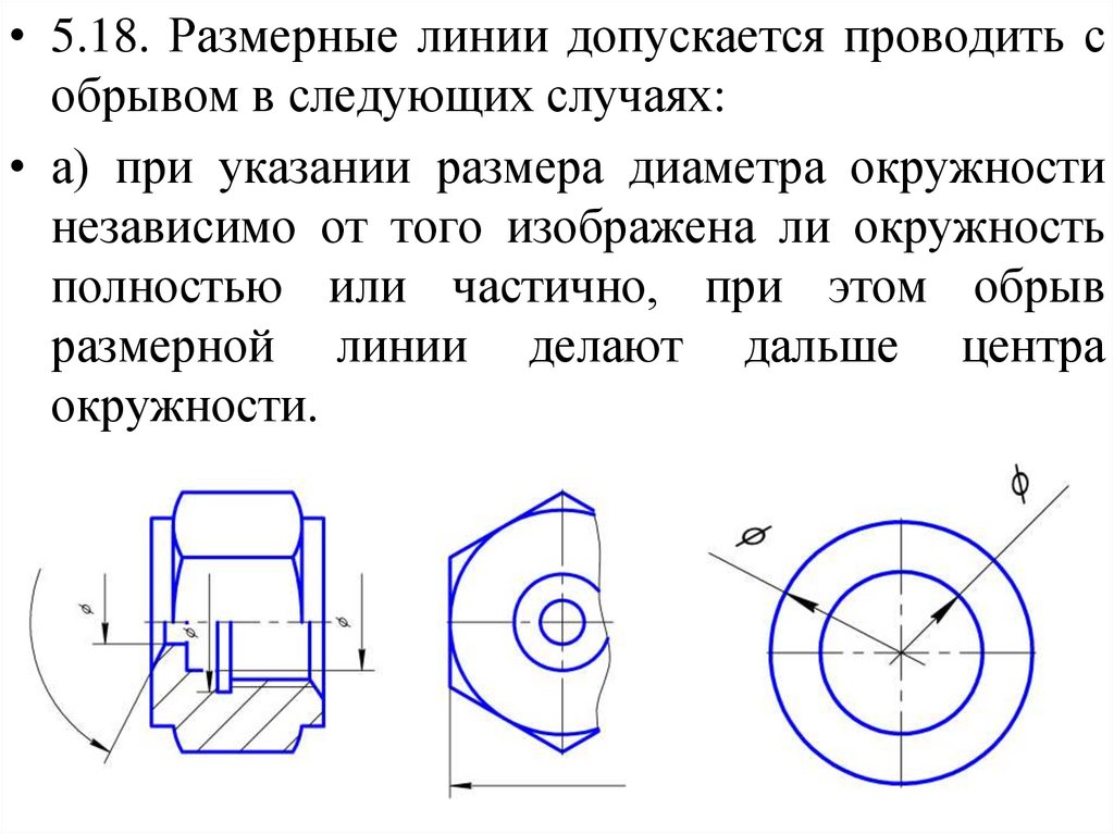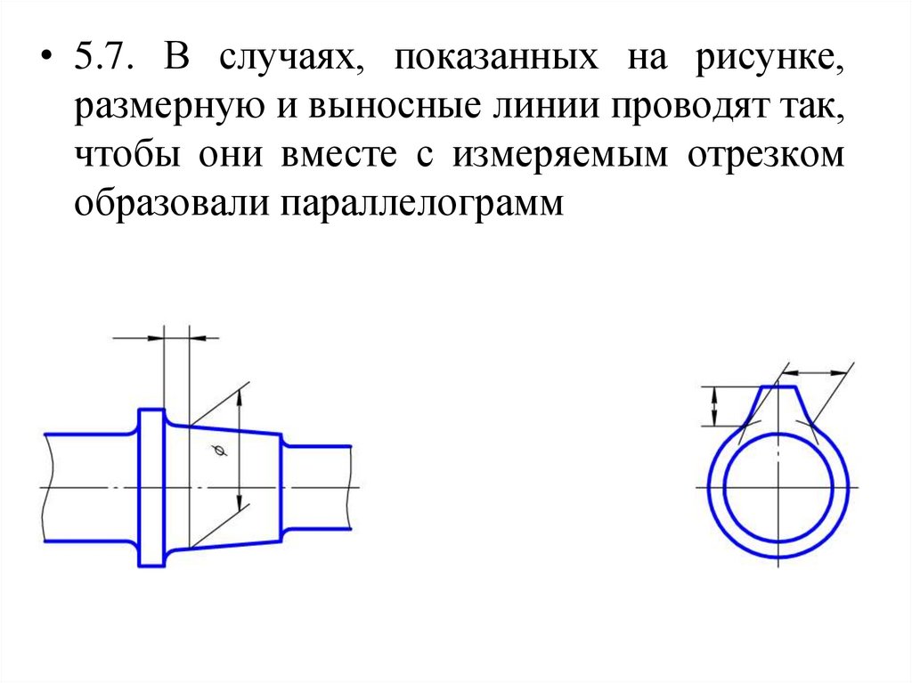 • 5.7. В случаях, показанных на рисунке,размерную и выносные линии проводят так,
