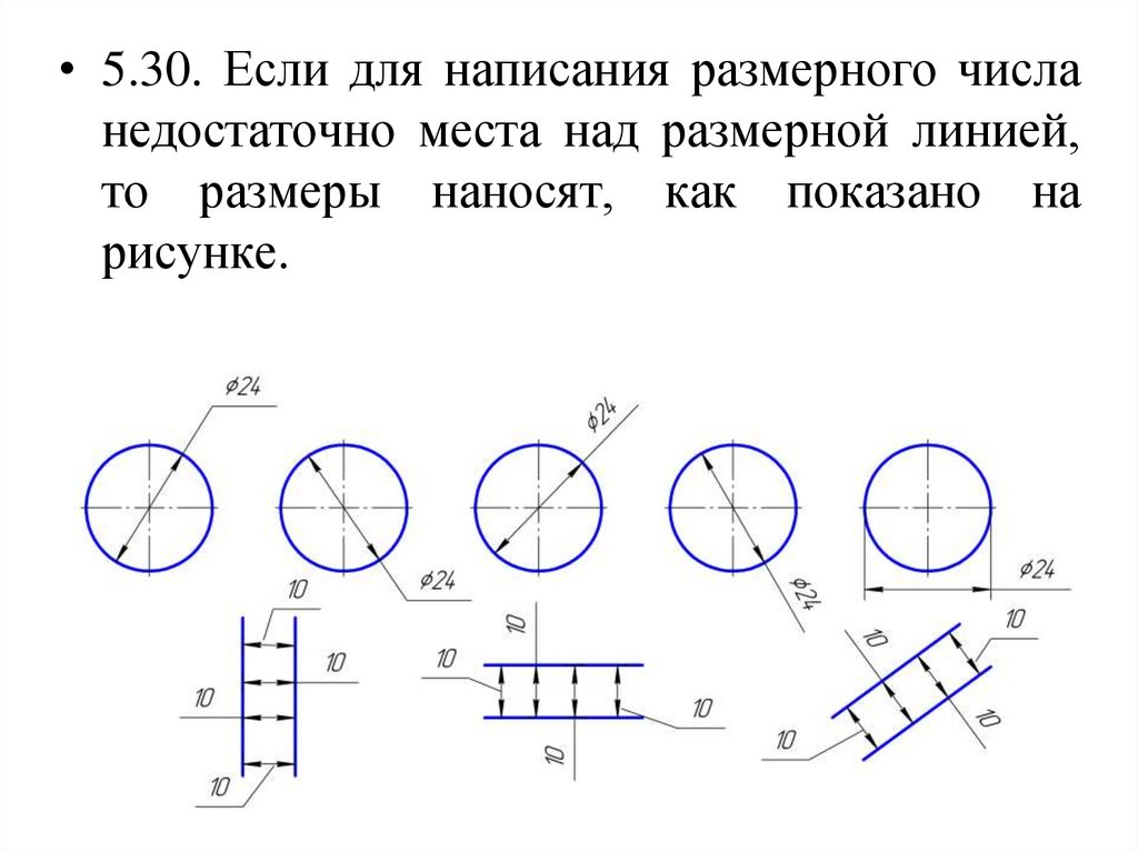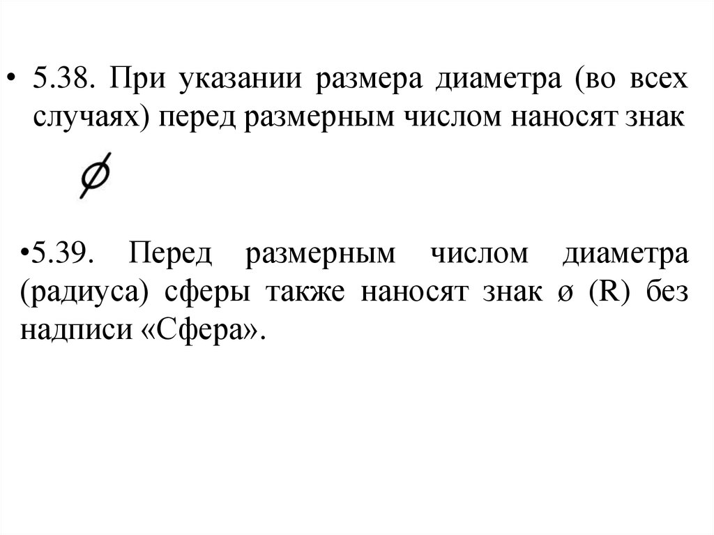 • 5.38. При указании размера диаметра (во всехслучаях) перед размерным числом наносят знак