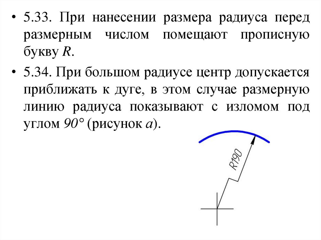 • 5.4. При нанесении размера дуги окружности