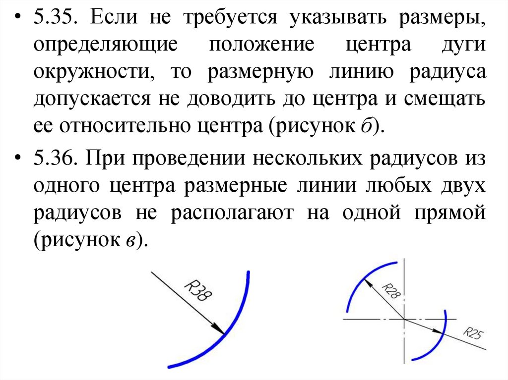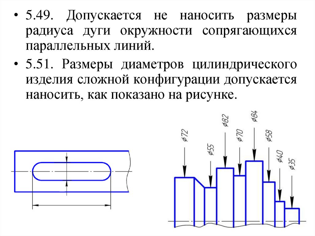• 5.49. Допускается не наносить размерырадиуса дуги окружности сопрягающихся