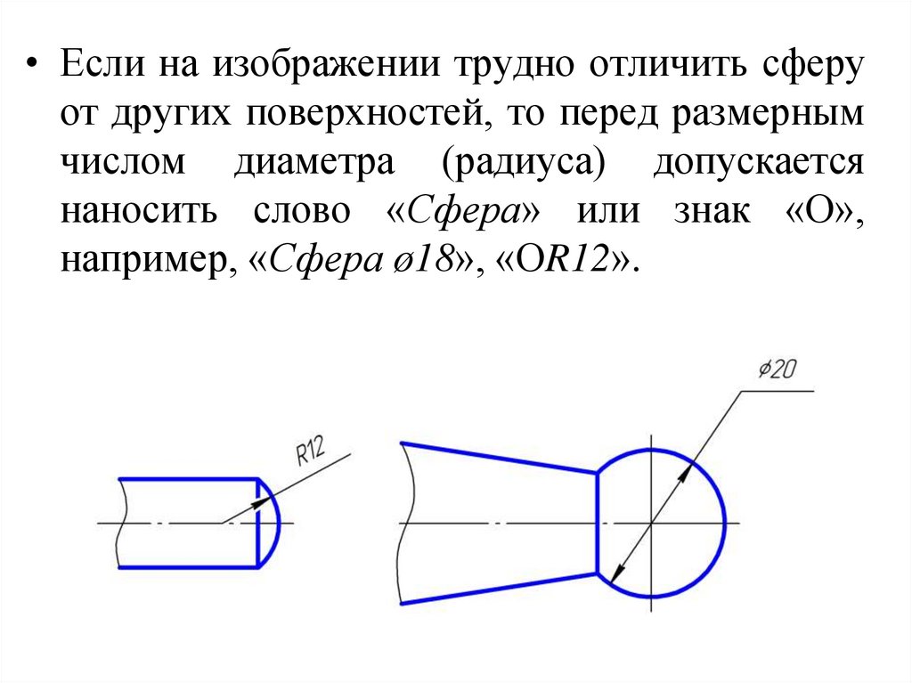 (радиуса) сферы также наносят знак ø (R) без