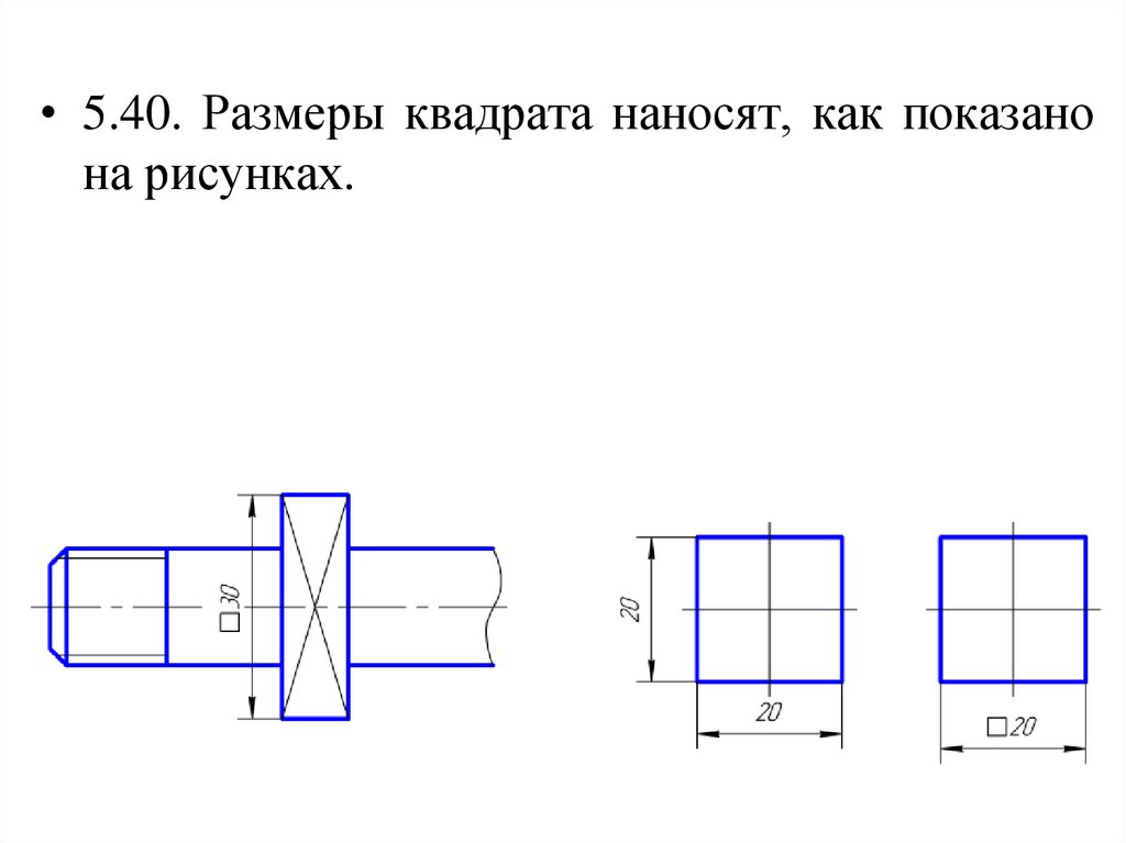 • 5.40. Размеры квадрата наносят, как показанона рисунках.