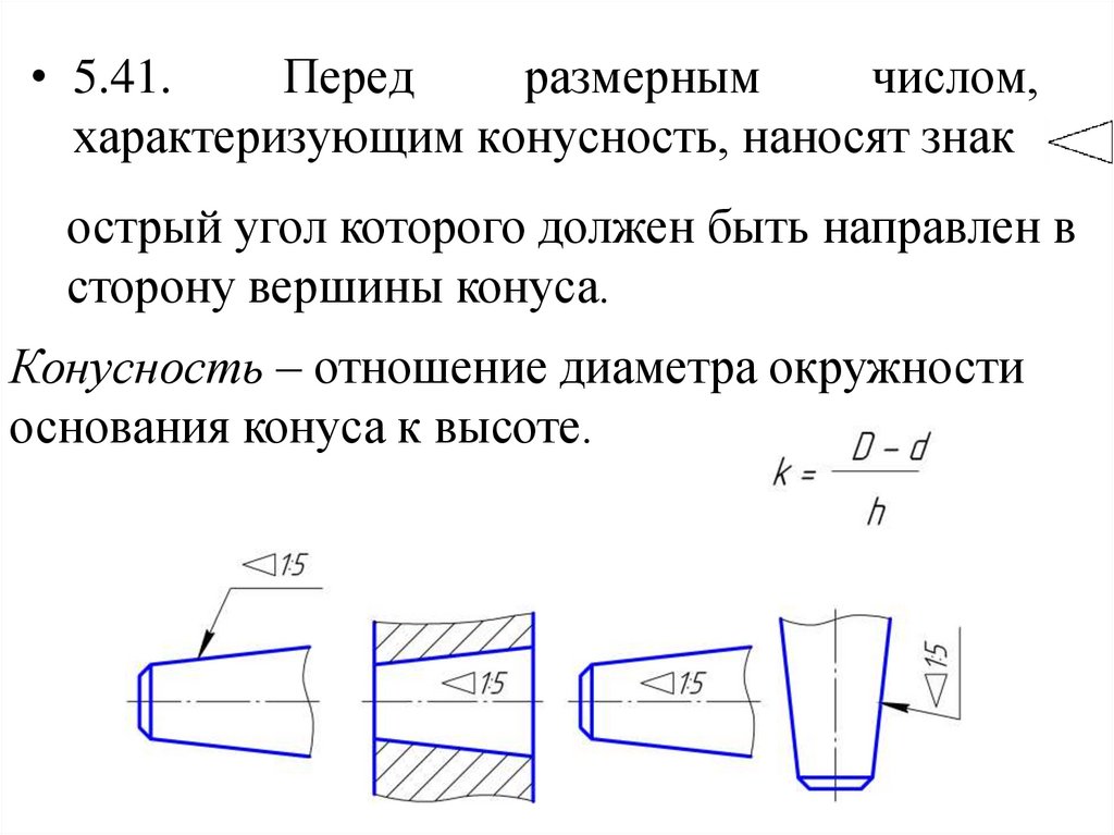 характеризующим конусность, наносят знак