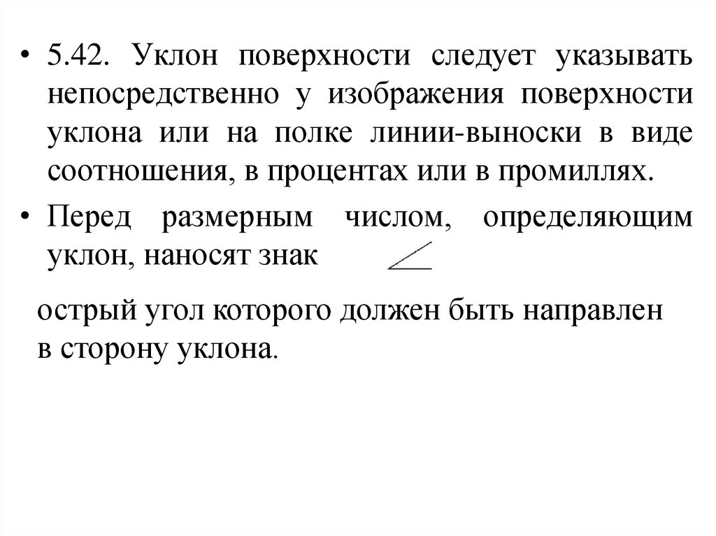 • 5.42. Уклон поверхности следует указыватьнепосредственно у изображения поверхности