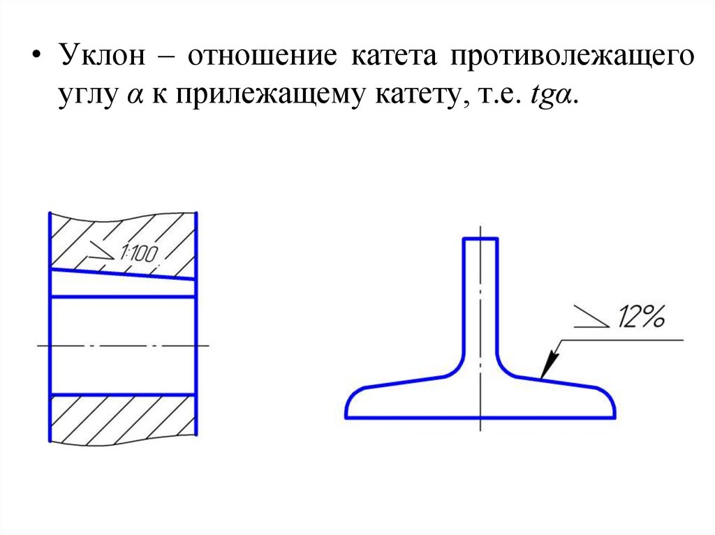 • Уклон – отношение катета противолежащегоуглу α к прилежащему катету, т.е. tgα.