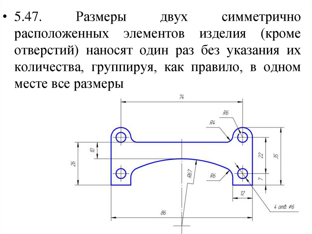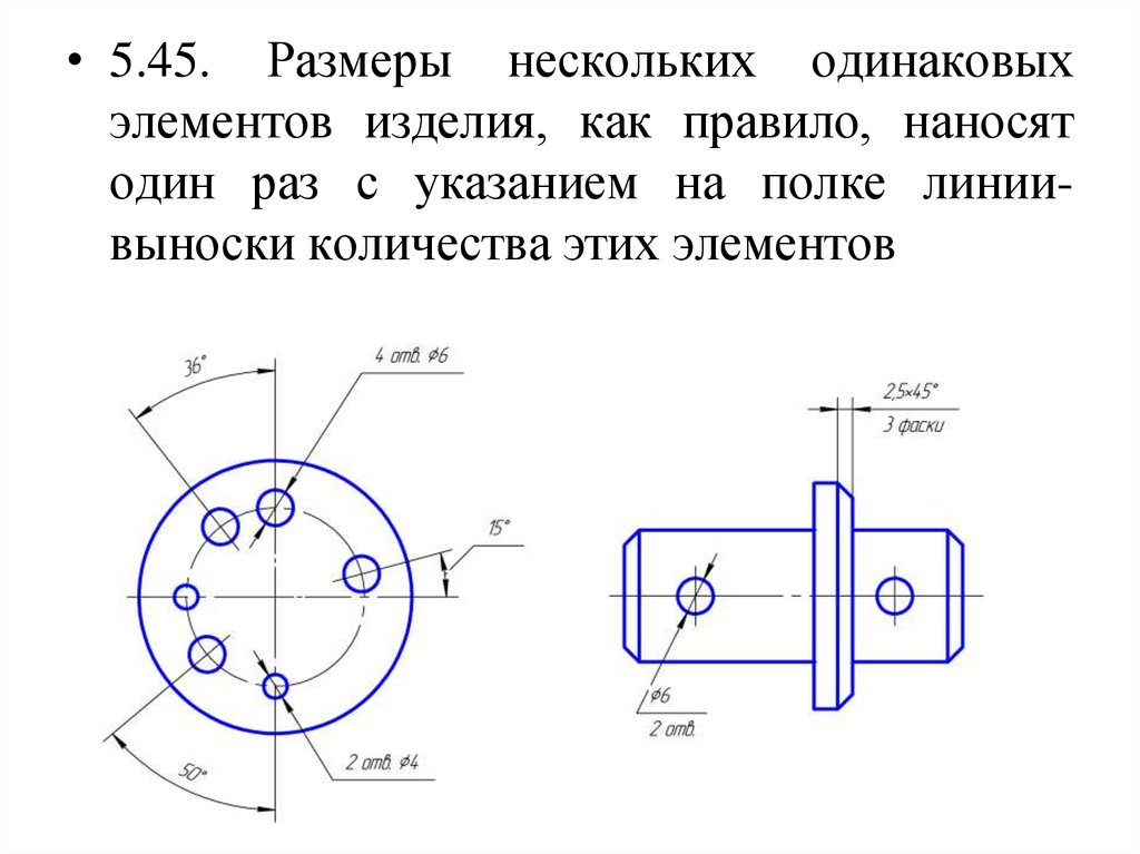 • 5.45. Размеры нескольких одинаковыхэлементов изделия, как правило, наносят