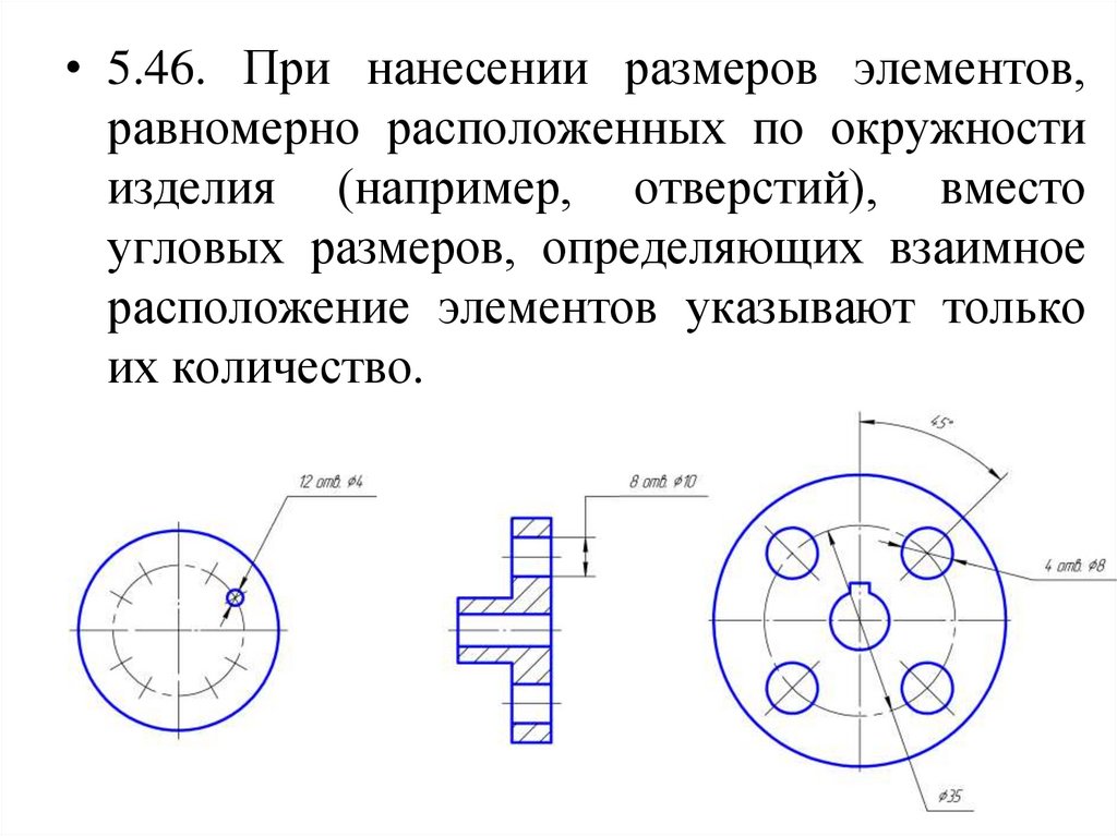 • 5.46. При нанесении размеров элементов,равномерно расположенных по окружности