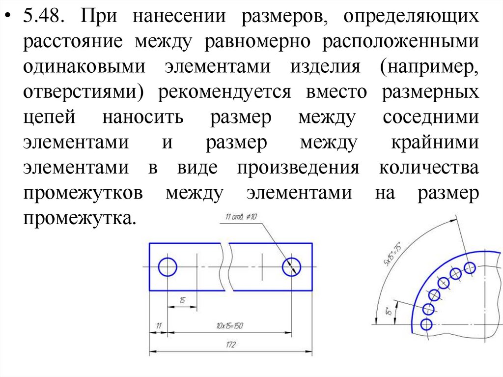 • 5.48. При нанесении размеров, определяющихрасстояние между равномерно расположенными