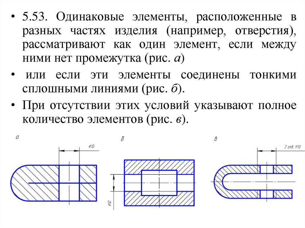 • 5.53. Одинаковые элементы, расположенные вразных частях изделия (например, отверстия),