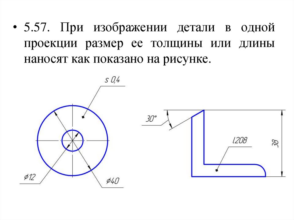 • 5.57. При изображении детали в однойпроекции размер ее толщины или длины